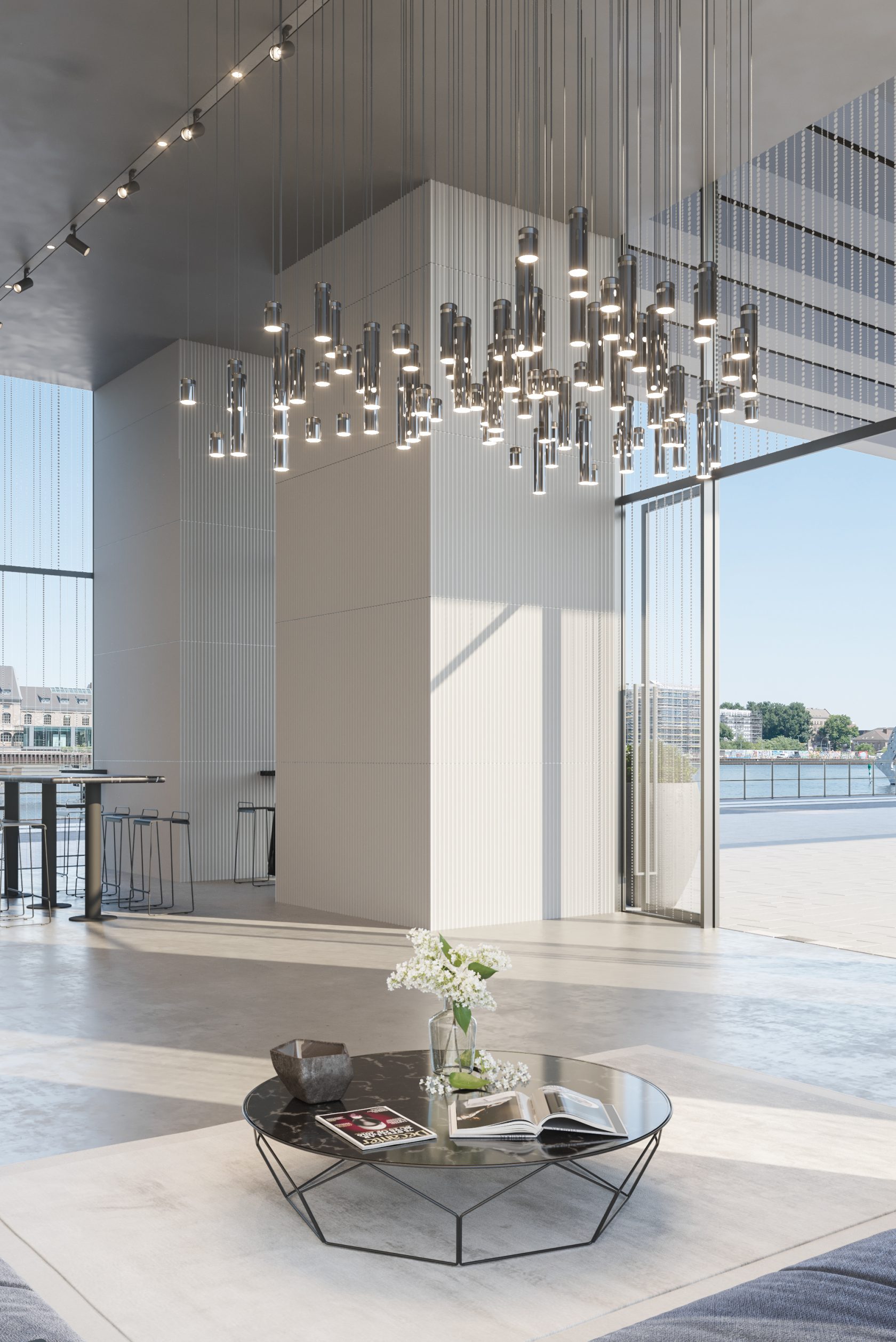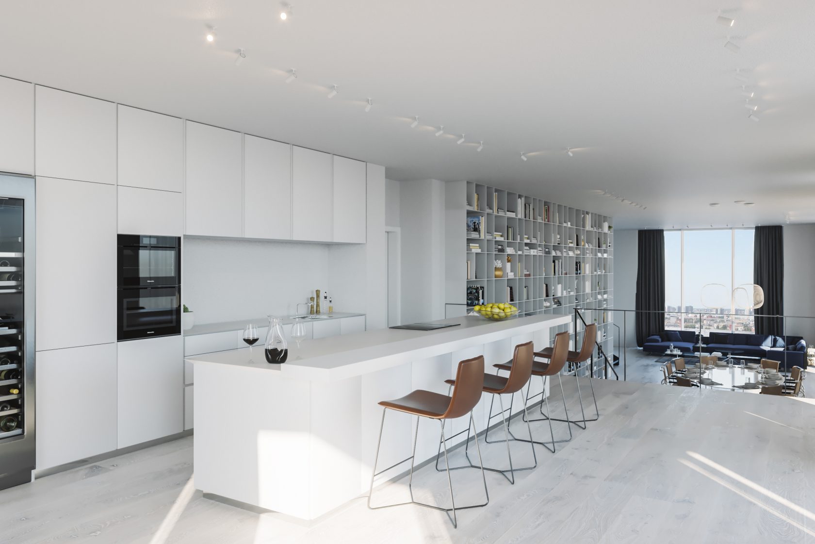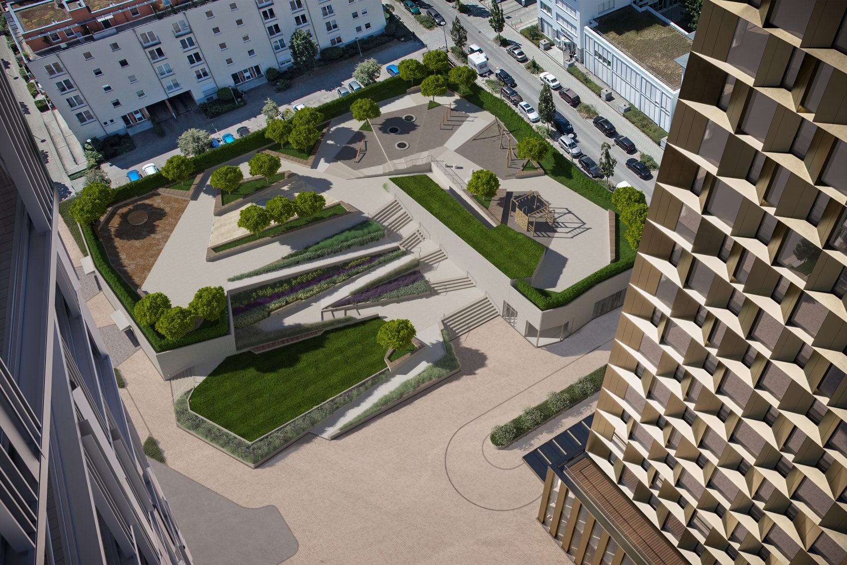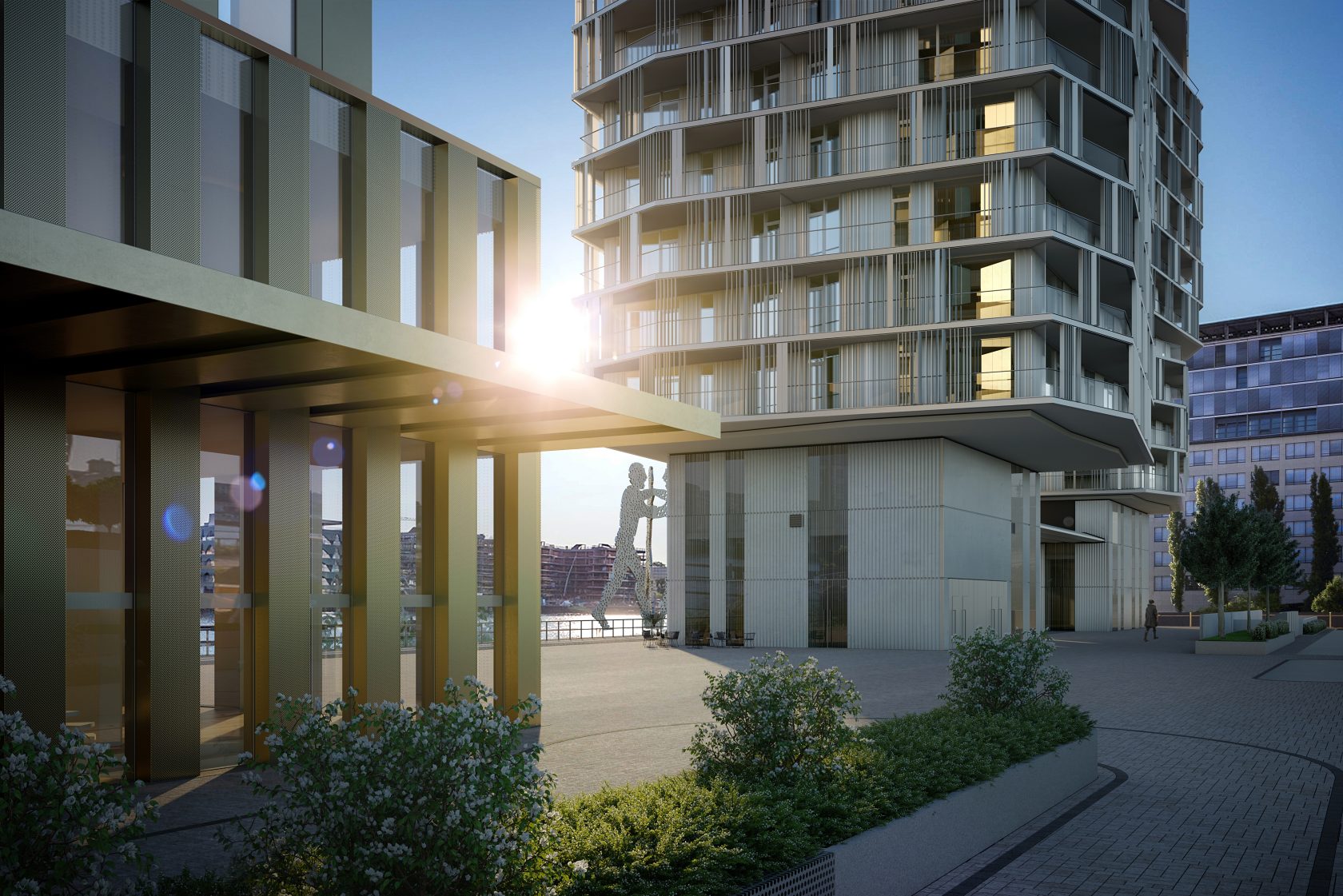 Realisiert werden zwei schlanke Wohntürme und ein Apartmenthotel. Alle Wohnungen haben neben dem Wasserbezug herausragende Blickbeziehungen auf das Berliner Stadtpanorama. Der attraktive Zuschnitt erlaubt eine absolut zeitgemäße Nutzung. Individuell zugeschnittene, großzügige Einheiten sind in den obersten vier Penthouse-Etagen geplant. Hohe Verweilqualitäten werden durch großzügige Terrassen sowie Grün- und Freizeitflächen geschaffen. Ein sich ergänzendes Lebensmittel- und Gastronomiekonzept belebt das Quartier. Die Tiefgarage mit seitlicher Ein- und Zufahrt hält das gesamte Areal komplett verkehrsfrei.